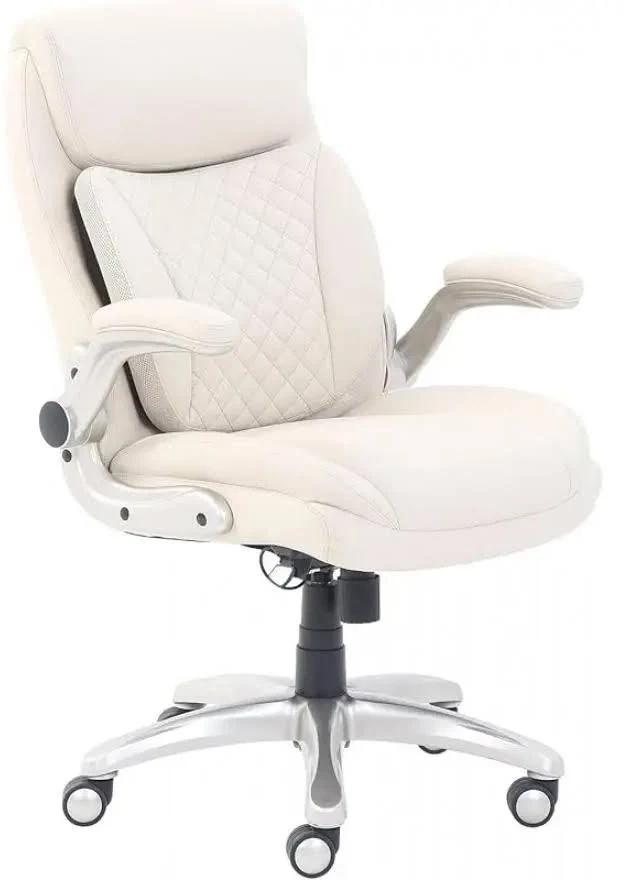 Amazon Basics Ergonomic Executive Office Desk Chair with Lumbar Support, Flip-up Armrests, Adjustable Height, Cream Leather